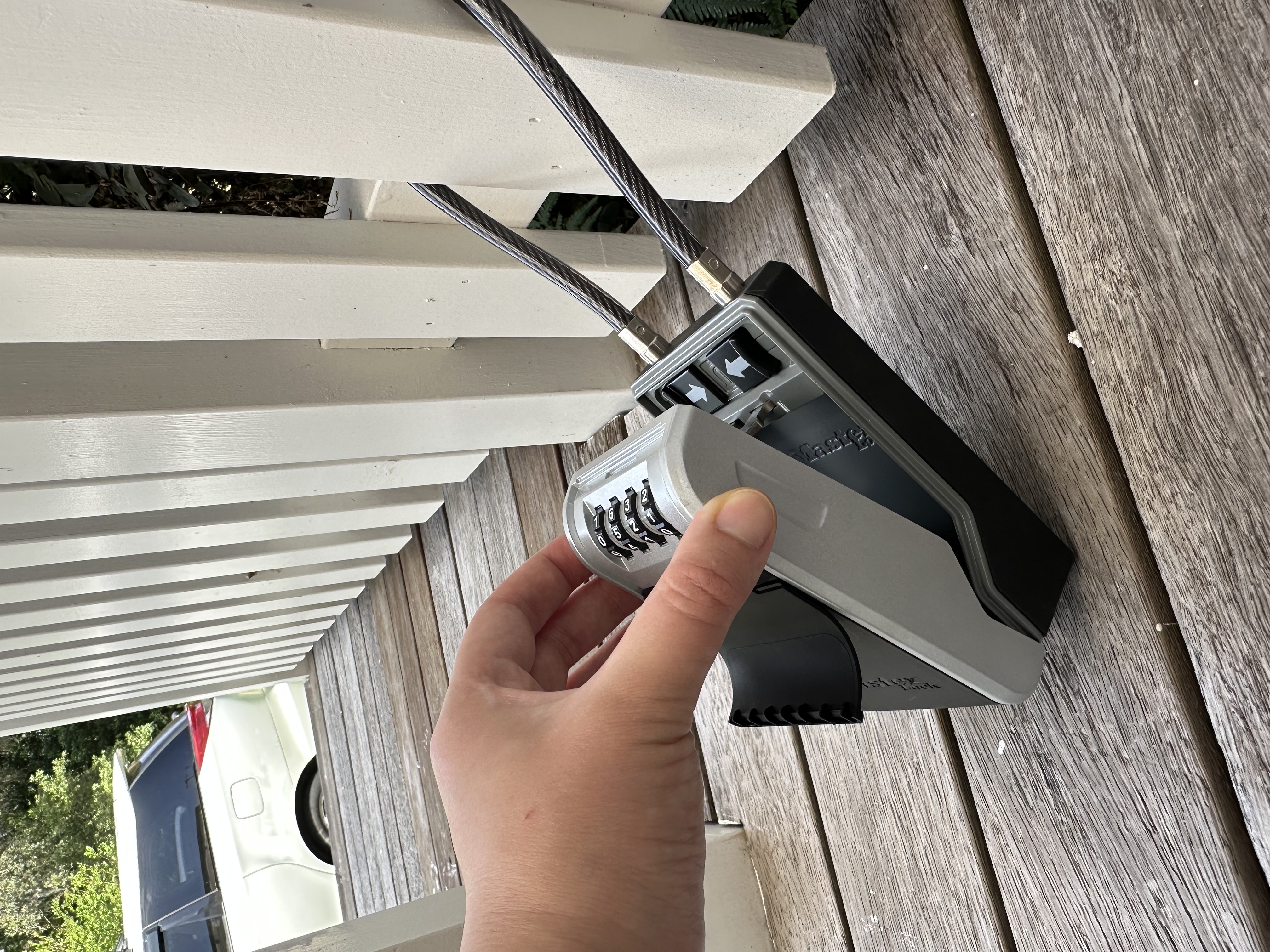 After retrieving the key, please turn the numbers on the lockbox to a random position to lock it properly.