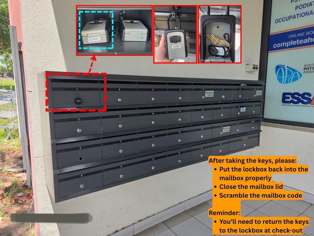 🔑 Please note: The key is placed in mailbox. Please refer to the next section (Key Collection) for detailed instructions and photos on how to access your key.