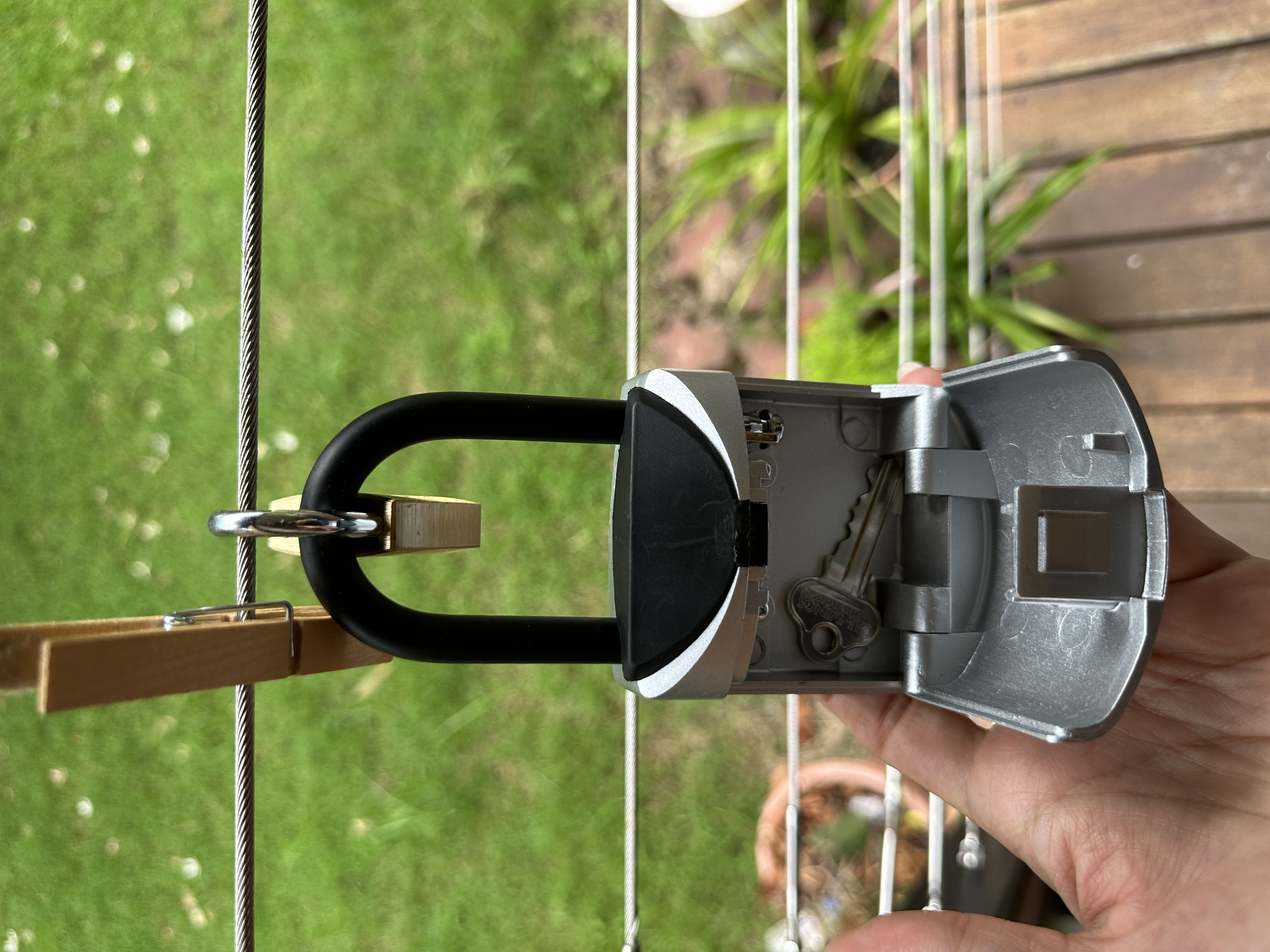 After retrieving the key, please turn the numbers on the lockbox to a random position to lock it properly.